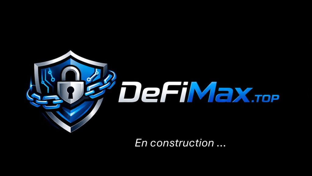 La « Cybersécurité » Voici mon logo moderne qui évoque la cybersécurité numérique, la technologie blockchain et l’innovation, en utilisant les couleurs bleu, noir et blanc, avec un symbole de bouclier stylisé, des éléments de chaînes ou de cadenas et une typographie futuriste pour le texte DeFiMax.top.